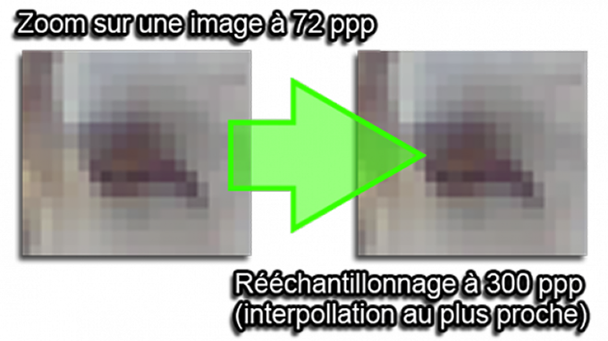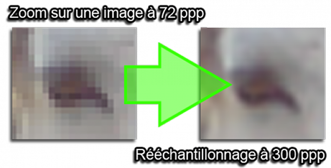 Comme vous pouvez le constater, l'interpolation "au plus proche" n'est pas du tout adaptée au photos numériques car dans ce cas précis, le rééchantillonnage s'avère n'avoir aucun effet, ce qui le rend totalement inutile. Voici le même exemple avec un rééchantillonage à interpolation bicubique (celui que nous utilisons pour le traitement de vos photos) :