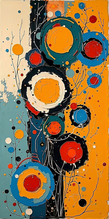 Notre gamme de tableaux couvre un spectre large, allant du complètement abstrait à des compositions légèrement figuratives ou fortement stylisées. Quel que soit le style choisi, chaque tableau se distingue par son intensité visuelle, ses couleurs éclatantes et une composition étudiée, équilibrée entre émotion et esthétique.