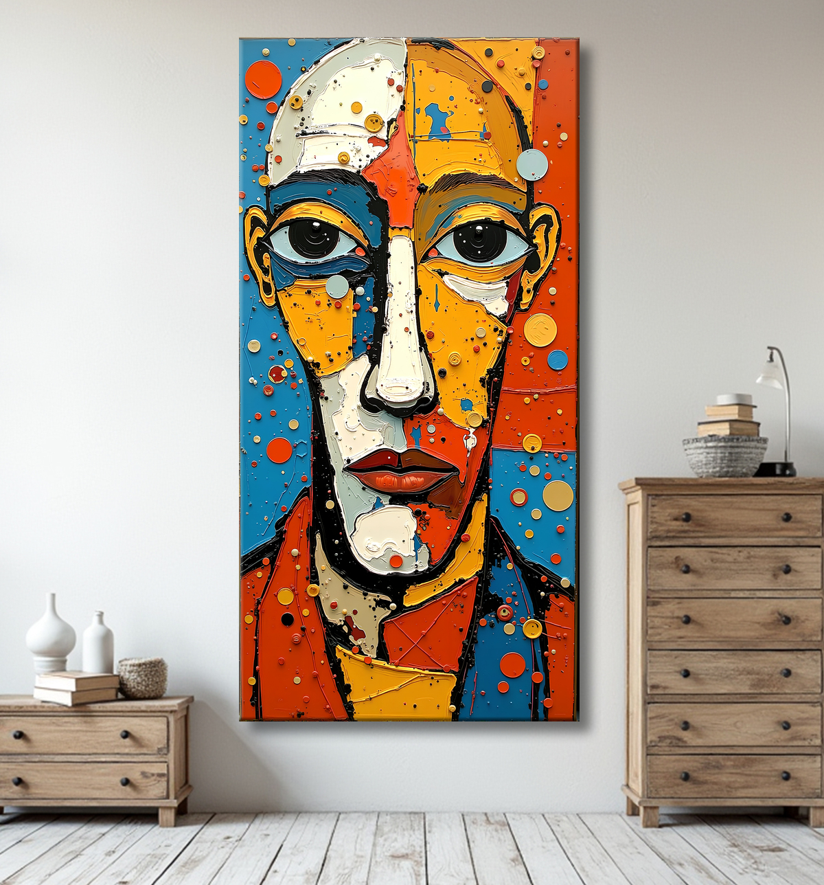 Ce portrait stylisé ne se limite pas à une représentation classique. Il affirme une identité visuelle distincte et moderne, parfaite pour ceux qui recherchent une œuvre singulière, capable de transformer une pièce ordinaire en un espace vivant et artistique.