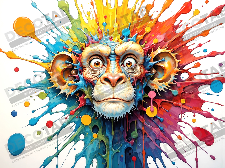 Chaque version de ce tableau présente un chimpanzé aux expressions variées : malicieux, pensif, éclaté de rire ou tout simplement surréaliste. C’est cette richesse d’interprétation qui en fait un tableau unique, à la fois ludique et plein de personnalité. Le fond — blanc, bleu clair, orange ou noir — met en valeur l’énergie visuelle sans jamais la noyer. Ce style décalé trouve facilement sa place dans des intérieurs créatifs, des espaces de travail dynamiques ou des lieux accueillant du public, comme des cafés ou des studios artistiques.