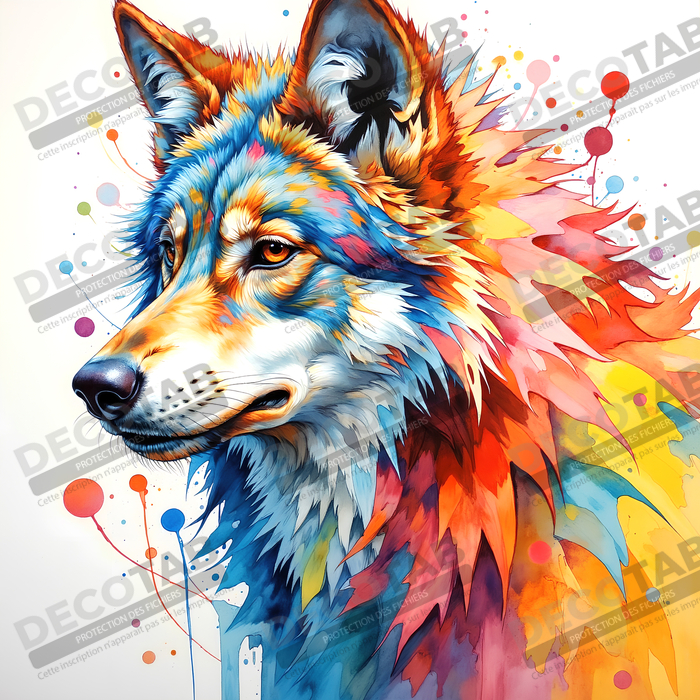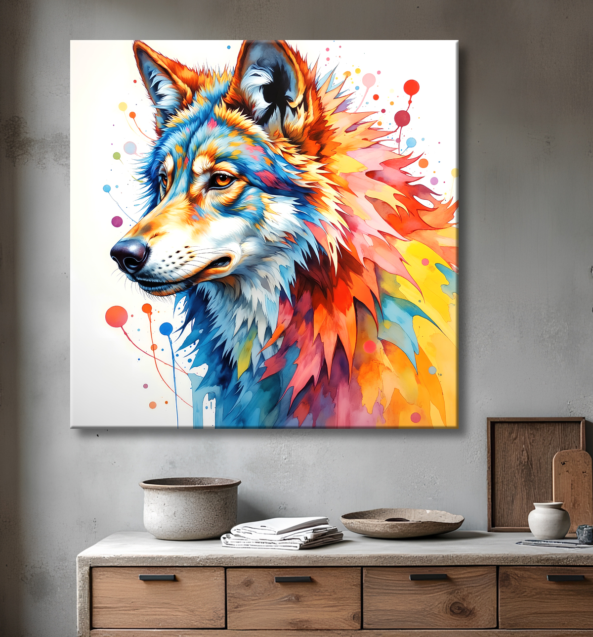 Le tableau loup pop art sur fond blanc de DECOTAB réinvente l'esthétique sauvage à travers un jeu subtil d'éclaboussures légères et de mouvements raffinés. Sur une toile lumineuse, le loup est mis en scène dans une posture fière, son pelage semblant se dissoudre dans une pluie légère de couleurs vives : bleu tendre, jaune éclatant, rose pastel et nuances d'orange chaleureux. Contrairement aux tableaux plus bruts, ici le dynamisme s'exprime avec délicatesse, offrant une vision plus poétique et aérienne du loup. Pour découvrir un style plus audacieux et expressif, explorez notre tableau loup pop art fond jaune.