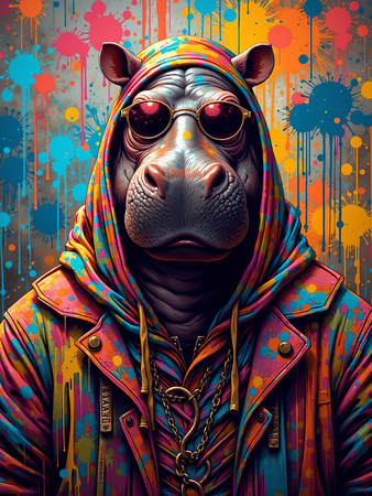 Les animaux représentés dans cette collection sont aussi exubérants que les décors qui les entourent : lions avec lunettes néon, chiens DJ coiffés de casquettes retournées, zèbres vêtus en rappeurs old school, ou encore girafes hippies couvertes de peintures tribales. Chaque visuel joue sur les contrastes entre hyperréalisme animalier et abstraction graphique. Certains tableaux évoquent clairement l’univers des comics ou du hip-hop new-yorkais, tandis que d’autres flirtent avec l’esthétique psychédélique des années 90. L’influence visuelle de l’artiste Sylvain Binet se ressent dans la liberté graphique et le soin apporté aux regards et aux textures. Cette collection s’adresse à un public varié, à la fois féminin et masculin, notamment les amateurs de déco pop, les passionnés de culture geek, ou simplement ceux qui veulent injecter une dose de vitalité et d’humour dans leur quotidien visuel.