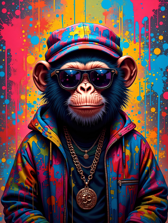 Tableau singe graffiti décliné en versions hip-hop, punk, DJ ou clown. Œuvres exclusives Decotab pour une déco chimpanzé percutante et ultra stylée.