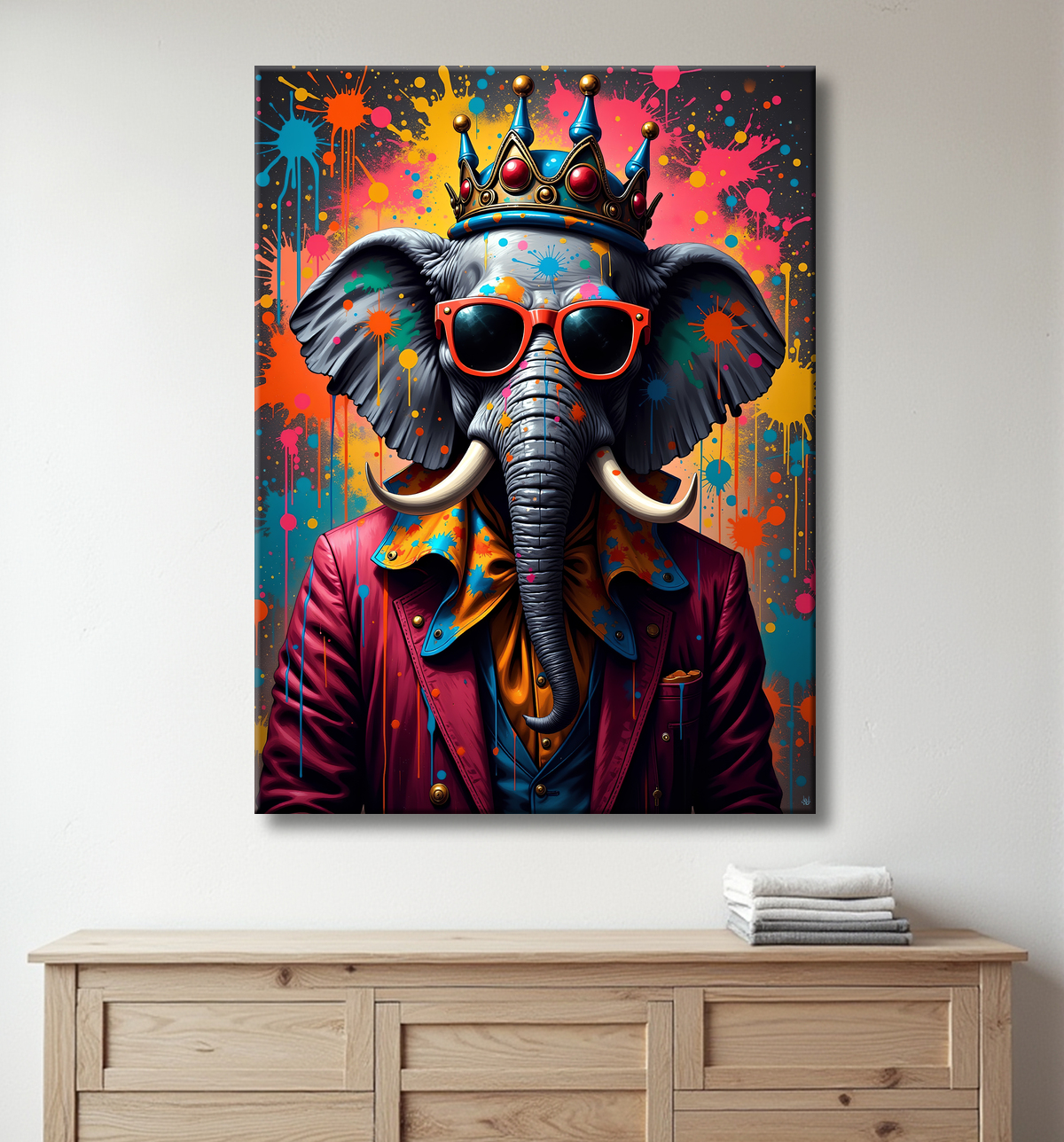 Décliné en plusieurs univers — DJ électro, hip-hop urbain, clown stylisé ou graffeur masqué — l’éléphant graffiti s’adapte à toutes les ambiances modernes, qu’elles soient masculines, artistiques ou éclectiques. Chaque tableau est pensé pour captiver l’œil et inviter au sourire. Cette série trouve parfaitement sa place dans un salon à la déco industrielle, une salle de jeu colorée ou un espace professionnel au style assumé. Pour encore plus d’impact visuel, associez ce tableau à notre collection Splash Color ou mixez-le avec un animal au bar pour une décoration urbaine pleine d’humour.
