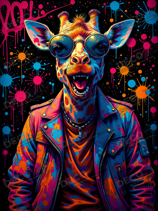 Dans cette série exclusive Decotab, la girafe graffiti se décline en plusieurs personnages hauts en couleur : clown urbain, DJ élancé, diva funky ou graffeuse chic. Les fonds saturés, les projections de peinture, les tags et les contrastes vifs créent un univers visuel dynamique et contemporain. Ces tableaux s’intègrent aussi bien dans un intérieur moderne que dans un espace de travail créatif, une chambre d’enfant ou une salle de jeu. Pour une ambiance encore plus intense, explorez notre collection Splash Color ou associez plusieurs animaux pour un mur galerie 100 % urbain.