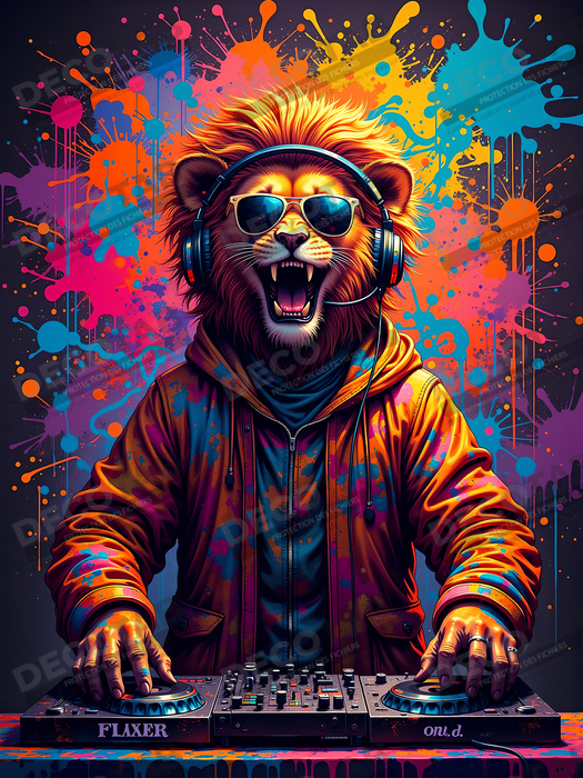 Chaque modèle de lion graffiti est décliné autour de différents univers vestimentaires et esthétiques, créant ainsi une galerie complète de portraits tous aussi uniques les uns que les autres. Certains le représentent en DJ déchaîné, casque vissé sur la crinière, d’autres en biker menaçant aux lunettes miroir, ou encore en roi du hip-hop, tatoué, casquette retournée sur un fond éclatant. Vous trouverez également des versions plus artistiques et burlesques, où le lion prend des airs de clown graffeur, ou de musicien jazz façon Harlem des années 30. Cette diversité permet à chacun de trouver une version du lion graffiti qui correspond à son intérieur et à sa personnalité.