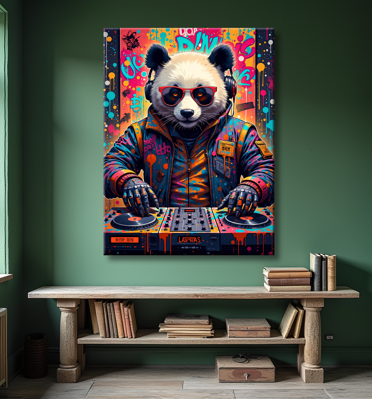Le panda graffiti bouscule les codes. Connue pour sa douceur et son air débonnaire, cette icône de la tendresse est ici propulsée dans un univers de street art explosif et audacieux. Teinté de couleurs vives et traversé d’éclats de peinture, chaque tableau propose une relecture décalée et pleine de caractère de ce mammifère adoré. Panda DJ à casquette, graffeur en lunettes néon ou panda clown déjanté, chaque modèle donne vie à un personnage haut en couleur, prêt à électriser votre intérieur.
