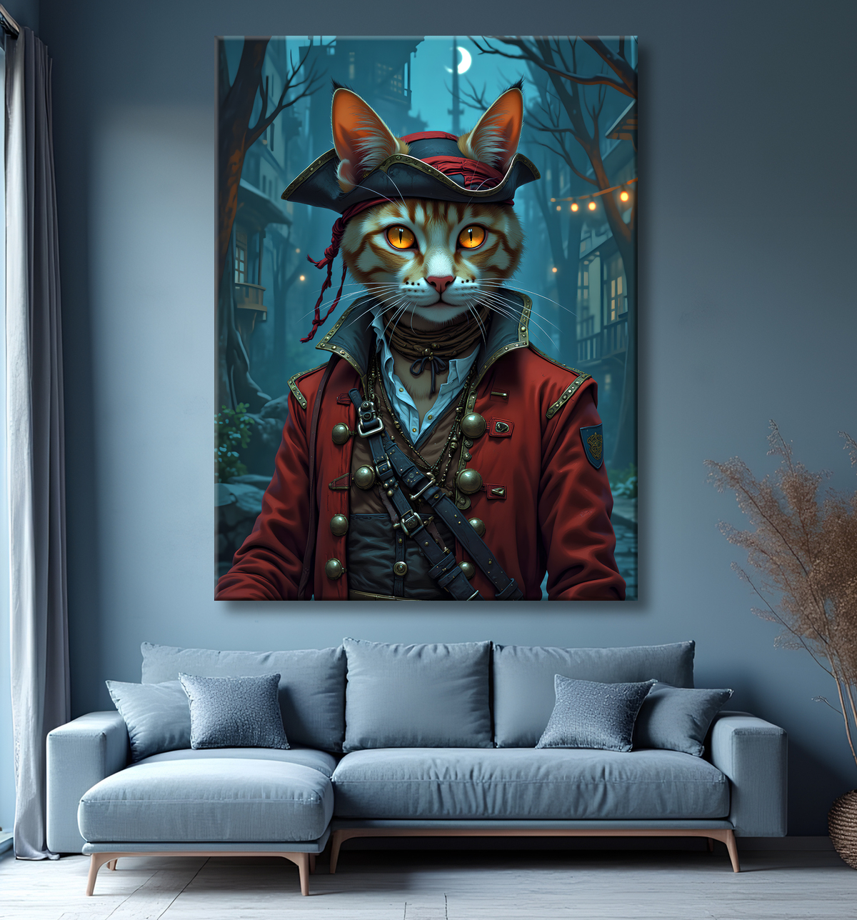 Imprimé dans notre atelier en France sur toile d’art ou papier premium, chaque tableau est proposé en différents formats, avec options vernis semi-brillant, cadre noir, bois naturel ou caisse américaine sur mesure. Le style du chat pirate s’adapte aussi bien à une chambre d’enfant originale, un bureau créatif, une entrée pleine de caractère ou un salon contemporain où l’on ose l’humour graphique. Son ton espiègle séduit tout autant la clientèle féminine que les passionnés de déco audacieuse.