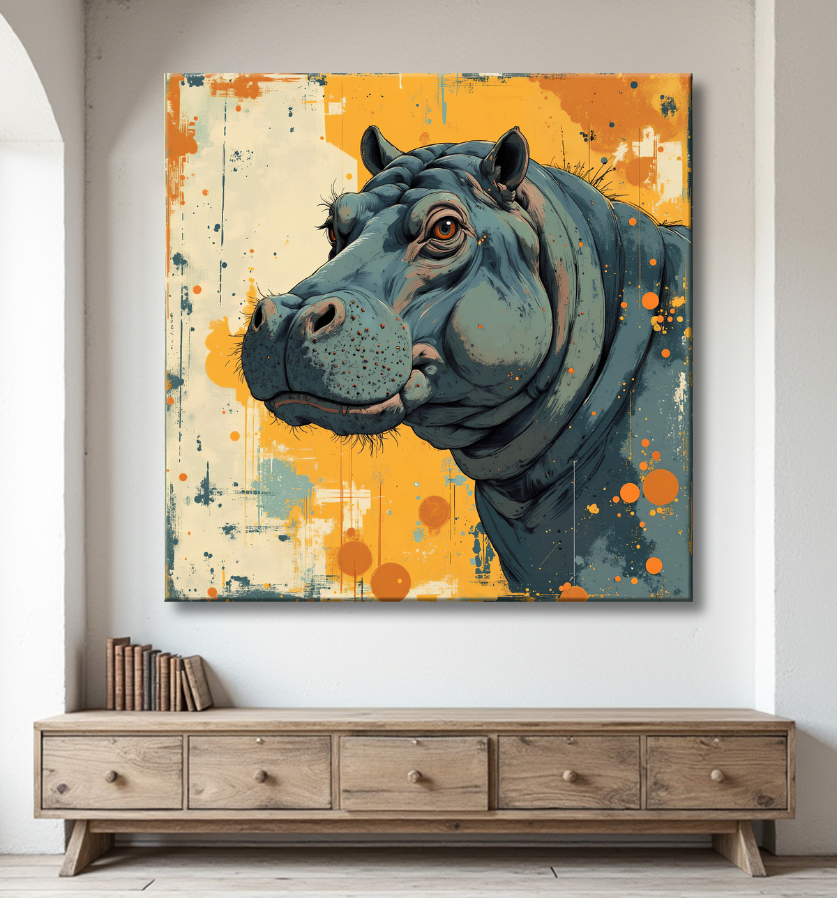 Tableau hippopotame style peinture moderne