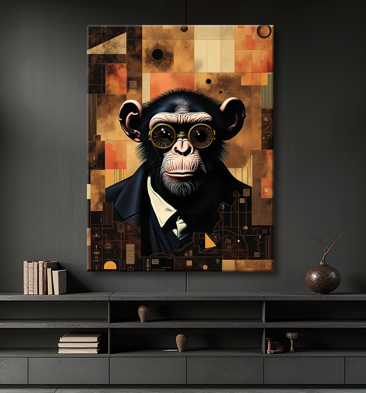 Ce portrait animalier rétro est une création exclusive DECOTAB, non disponible ailleurs. Il s’adresse aux amateurs d’art mural qui souhaitent sortir des sentiers battus, allier humour discret et sophistication graphique. Il peut être exposé seul pour renforcer son pouvoir narratif ou intégré dans une composition murale plus éclectique. Pour un rendu plus décalé encore, explorez également notre chimpanzé pirate.