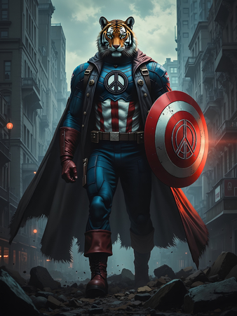 Tigre super héros peace and love