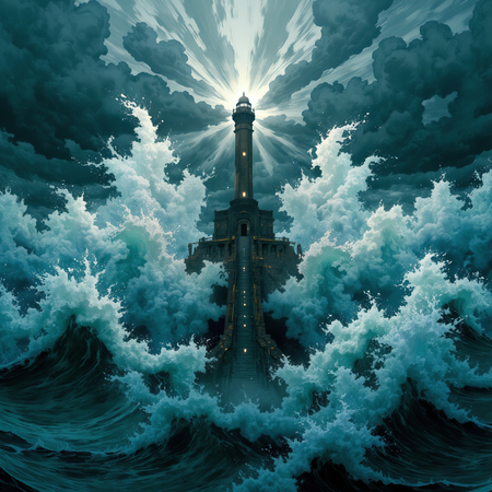 Les illustrations proposées se distinguent par leur style graphique audacieux, utilisant des coups de pinceau expressifs et des couleurs contrastées pour retranscrire avec force les éléments naturels en furie. La puissance visuelle des vagues, la richesse des nuages menaçants et la solitude imposante des phares apportent une dimension dramatique captivante à chaque tableau.