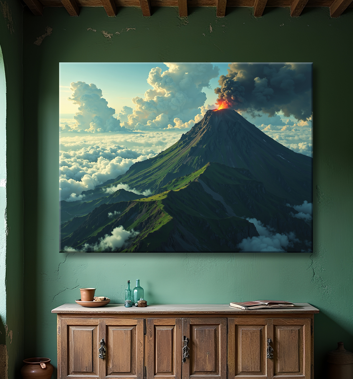 Ce tableau fait partie d'une série variée dédiée aux volcans, comprenant différents points de vue et ambiances, des paysages paisibles aux scènes plus dramatiques. Chaque œuvre offre une interprétation unique du thème volcanique, vous permettant ainsi de sélectionner le visuel idéal selon vos préférences et votre environnement décoratif.