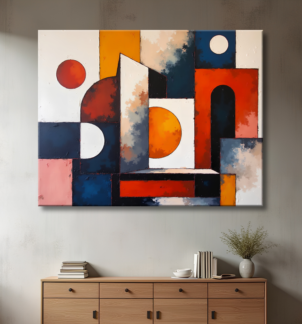 Avec sa dominante rouge et ses lignes acérées, ce tableau s’adresse aux amateurs de design contemporain et de compositions visuelles puissantes. Il structure un mur blanc, anime un espace sobre, et s’intègre parfaitement dans des intérieurs modernes ou minimalistes en quête d’une pièce forte et expressive.